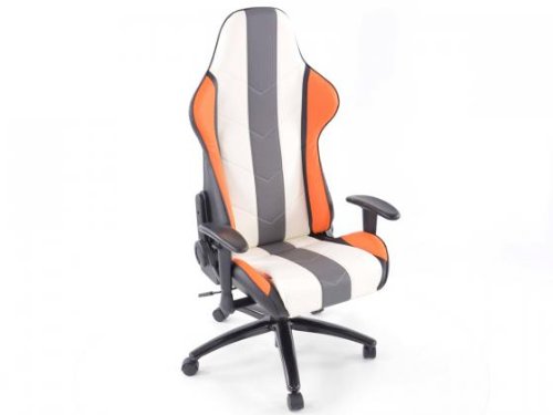 Colour: orange/white /grey - Upholstery: Artificial Leather - Base made of metal - including armrests, backrest + Adjustable height - max load of upto 150 kg - Sport seat swivel chair for racing feel in the office