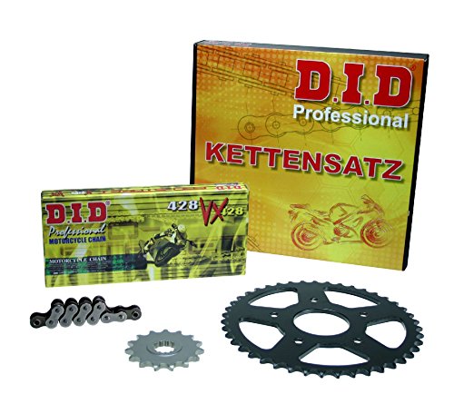 - kompletter Kettensatz in Originalübersetzung; D.I.D VX X-Ring-Kette, extra verstärkt; offene Kette (128 Glieder) mit Nietschloss; Ritzel 14 Zähne (CNC bearbeitet); Kettenrad 50 Zähne (CNC bearbeitet)