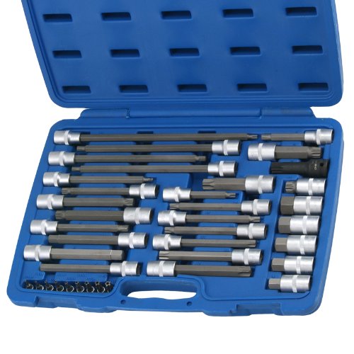 einzigartiges Sortiment für viele Spezialanwendungen insbesondere KFZ-Bereich - aus Chrom-Vanadium-S2-Stahl - 6 T-Profil Bit-Einsätze 12,5 (1/2):T40-T45-T50-T55-T60-T70 x 140 mm - 4 Innenvielzahn-Biteinsätze (XZN) 12,5 (1/2):M9x100, M10x140, M12x140, M14x140 - 4 Ribe-Biteinsätze 12,5 (1/2):R7x240, R8x240, R9x100, R10x140 - 4 Innensechskant-Biteinsätze 12,5 (1/2):10x140 mm, 11x140 mm, 13x140 mm, 7x230 mm - 5 Innensechskant-Biteinsätze 12,5 (1/2):14-17-19-22-24 x 55 mm - 9 TS-Biteinsätze (5-Stern) 6,3 (1/4) mit Bohrung:TS10-TS15-TS20-TS25-TS27-TS30-TS40-TS45-TS50 x 38 mmSpezial-Biteinsätze 12,5 (1/2):- 1 T-Profil Bit-Einsatz T80 x 100 mm, mit Bohrung - 1 Innensechskant-Biteinsatz mit Kugelkopf 5x160 mm - 1 Innenvielzahn-Kraft-Biteinsa...